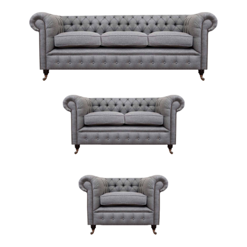 Chesterfield conjunto de sofá de tela textil tapizado sofá sofá conjunto 3 piezas nuevo