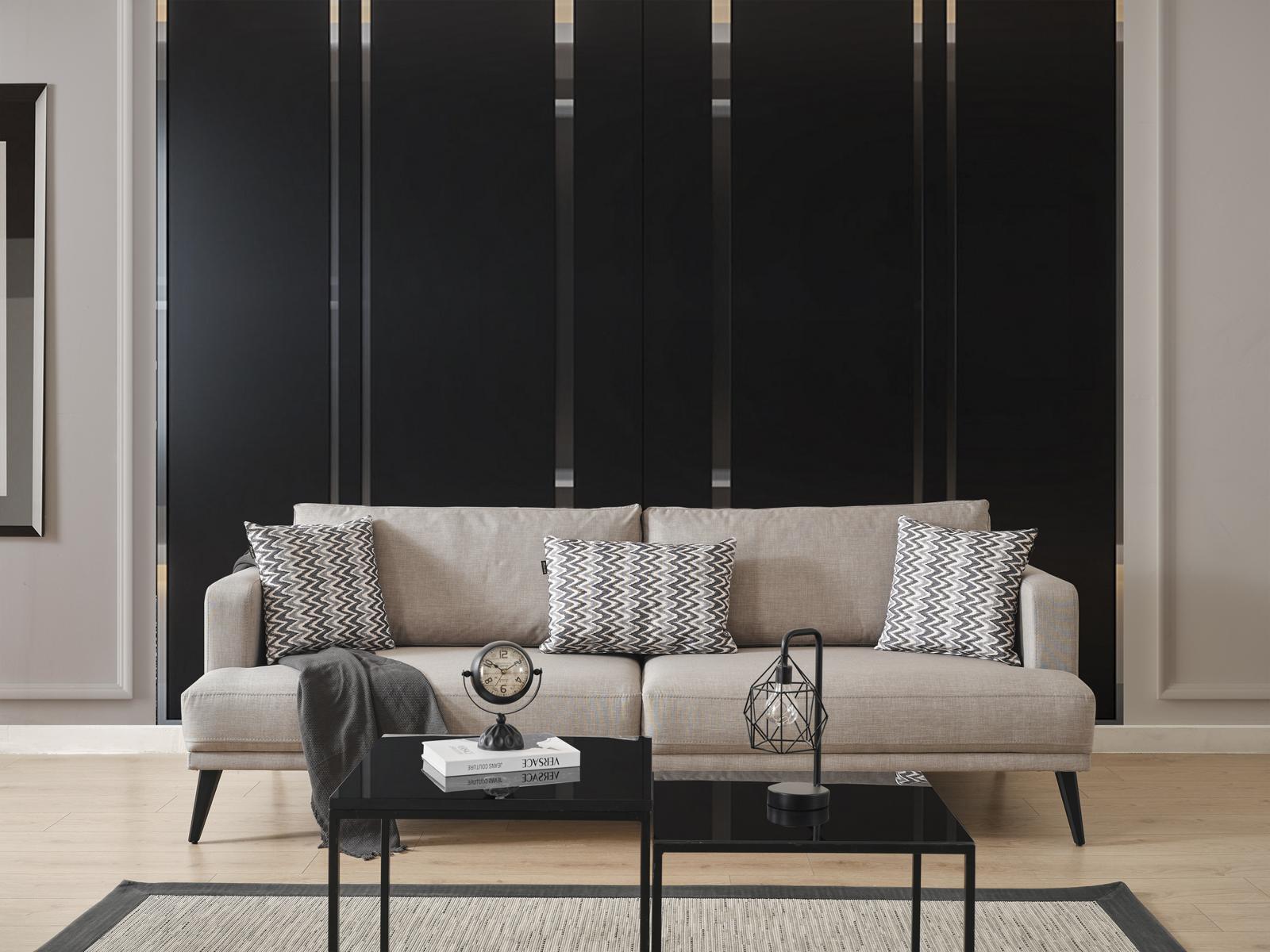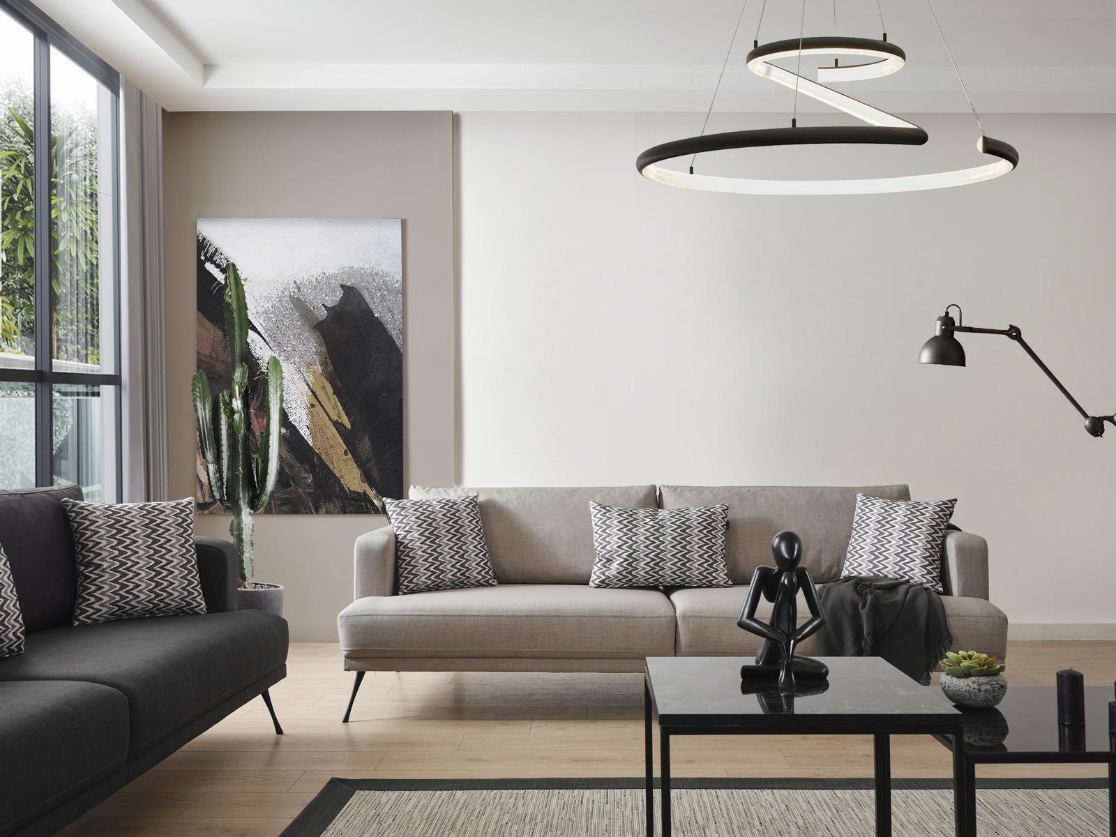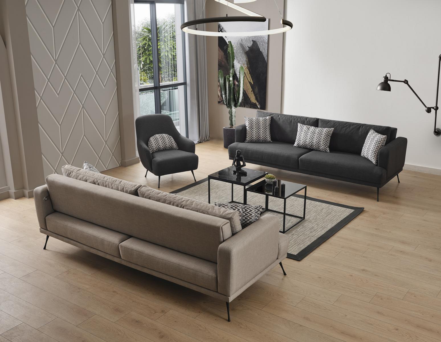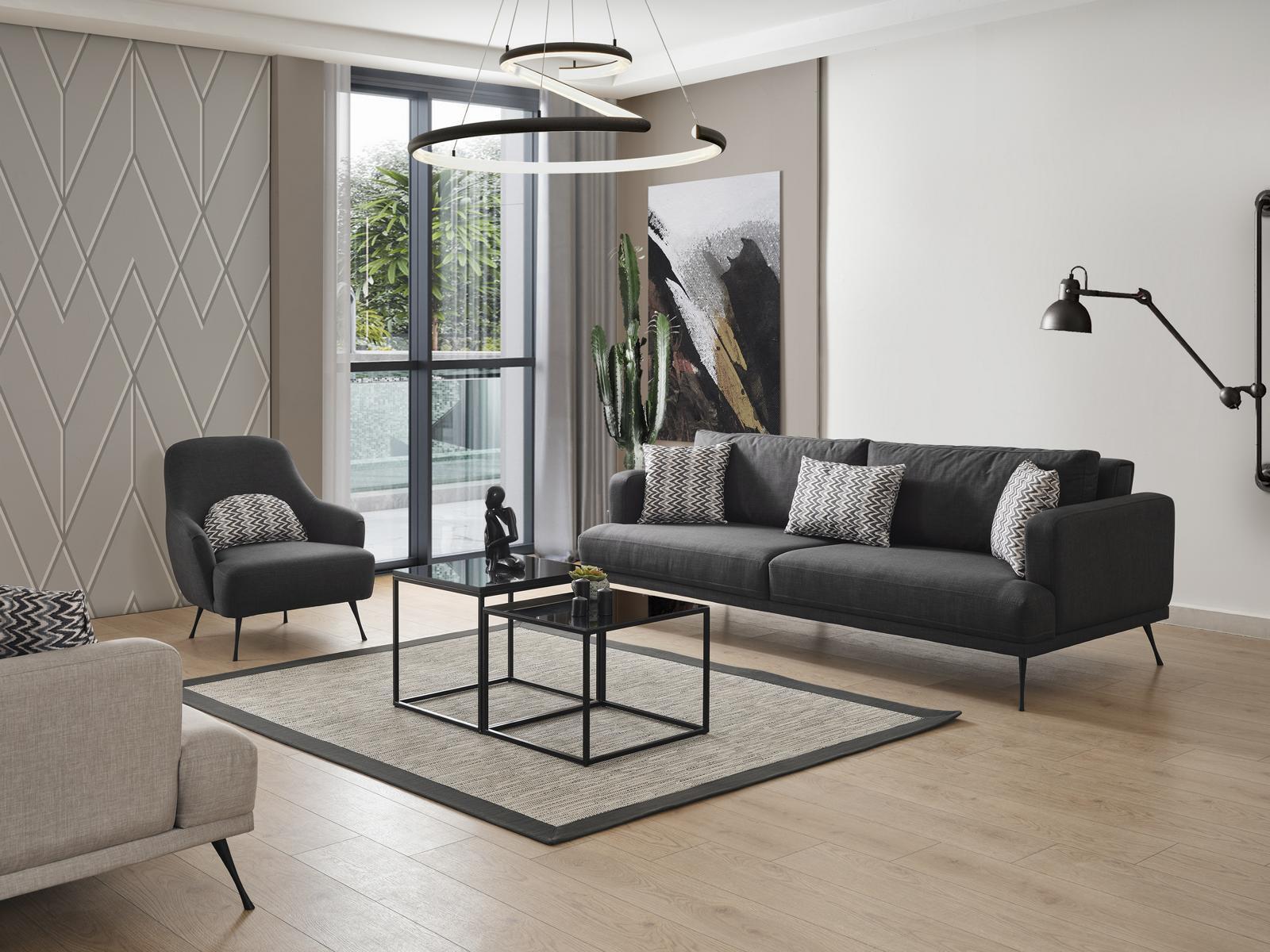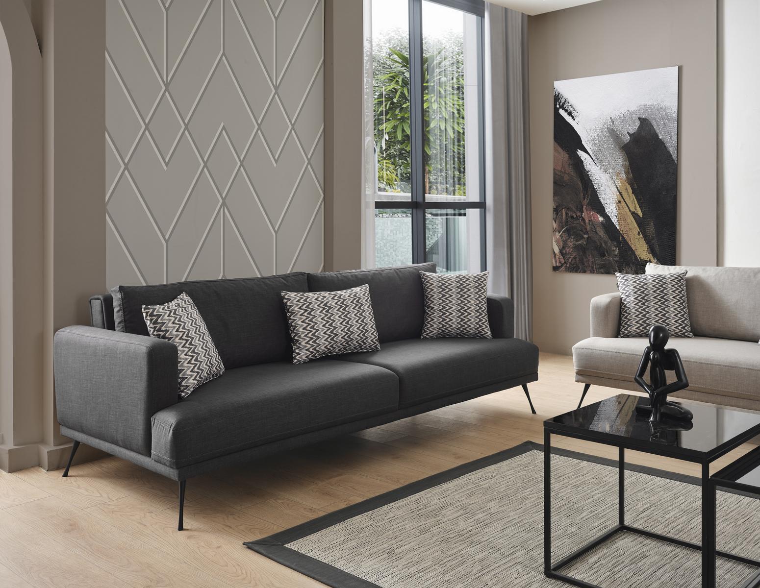 Conjunto completo de sofás 431 plazas en tela gris moderna.