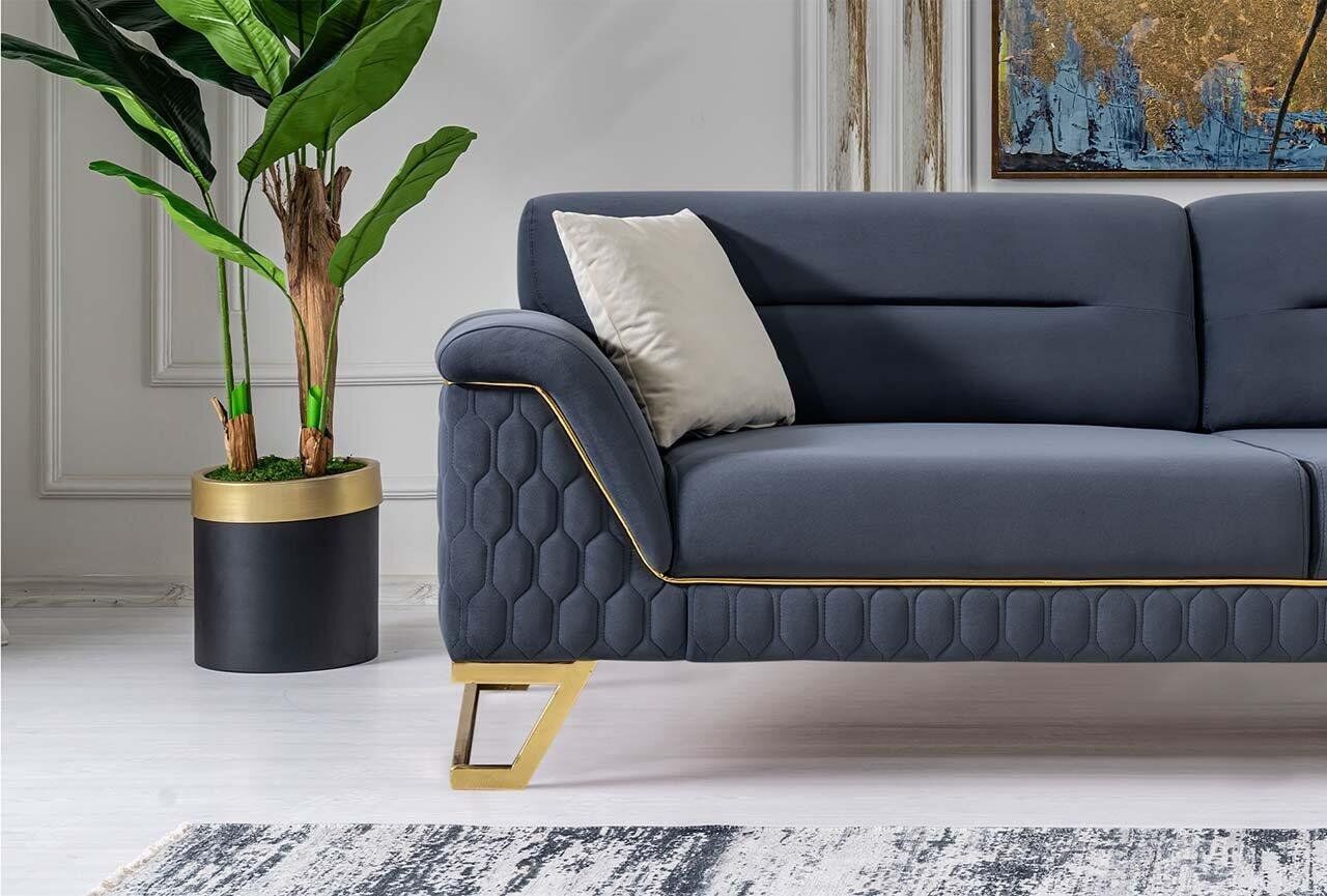 Introduciendo el lujoso Sofá de esquina de diseñador de lujo para sala de estar azul, moderno sillón, una pieza elegante que elevará la estética de tu hogar. Con un diseño moderno y sofisticado, este sofá de esquina de alta calidad brinda comodidad y estilo a tu sala de estar. Con sus dimensiones de aproximadamente 230 x 100 x 85 cm, este sofá de 3 plazas es ideal para espacios amplios, ofreciendo un amplio asiento para relajarse con familiares y amigos. El sillón a juego, con dimensiones de aproximadamente 85 x 85 x 90 cm, complementa perfectamente el sofá, brindando un lugar acogedor para momentos de tranquilidad.