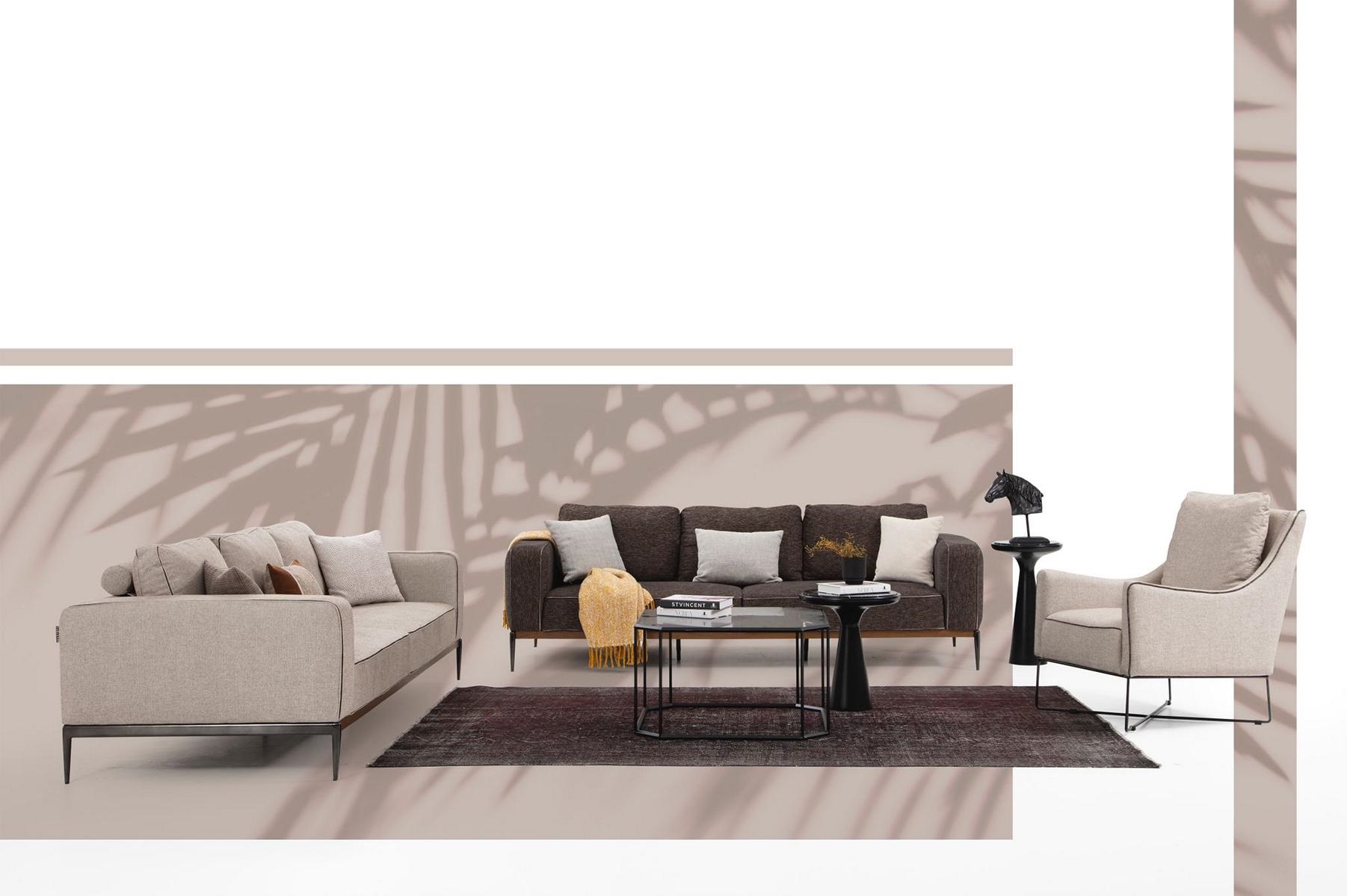 Sofá de 2 plazas Beige Sofás Sillón Set Moderno