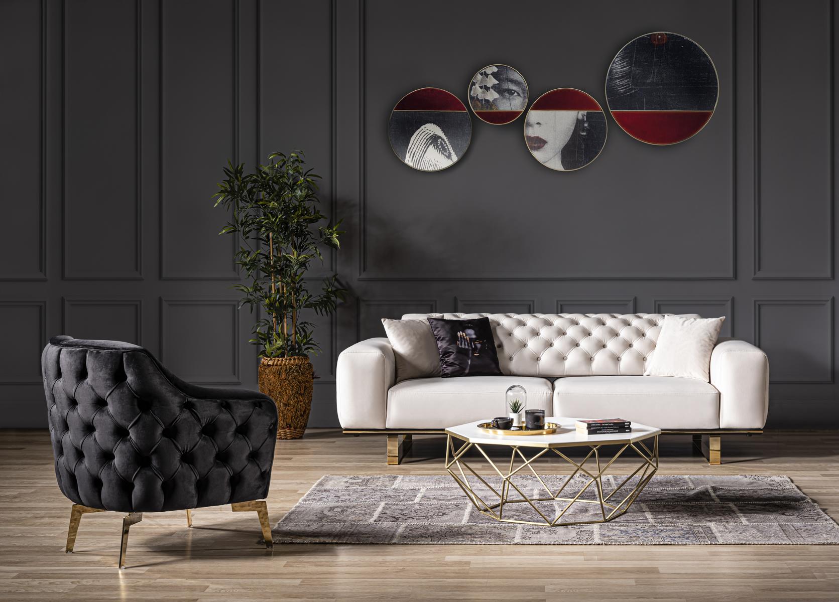 Ideal para salones elegantes o áreas de descanso, este conjunto de sofás ofrece un lugar acogedor para relajarse con estilo. La combinación de diseño Chesterfield clásico y la tela de lujo blanca hacen que estos muebles destaquen en cualquier decoración. Ya sea para disfrutar de una tarde de lectura o para recibir a invitados, este sofá y sillón son la elección perfecta para quienes buscan confort y elegancia en un solo producto.