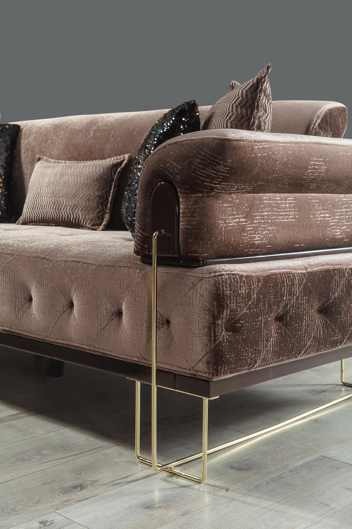 El Sofá marrón Chesterfield de 3+1 plazas para sala de estar es la combinación perfecta de estilo clásico y comodidad moderna. Con su elegante diseño, este sofá agrega un toque de sofisticación a cualquier sala de estar. Fabricado con metal y textil de alta calidad, este sofá garantiza durabilidad y confort. Sus generosas dimensiones de aproximadamente 240 x 91 x 87 cm para el sofá de 3 plazas y 91 x 85 x 98 cm para el sillón, brindan un amplio espacio para relajarse y disfrutar momentos de descanso en casa.