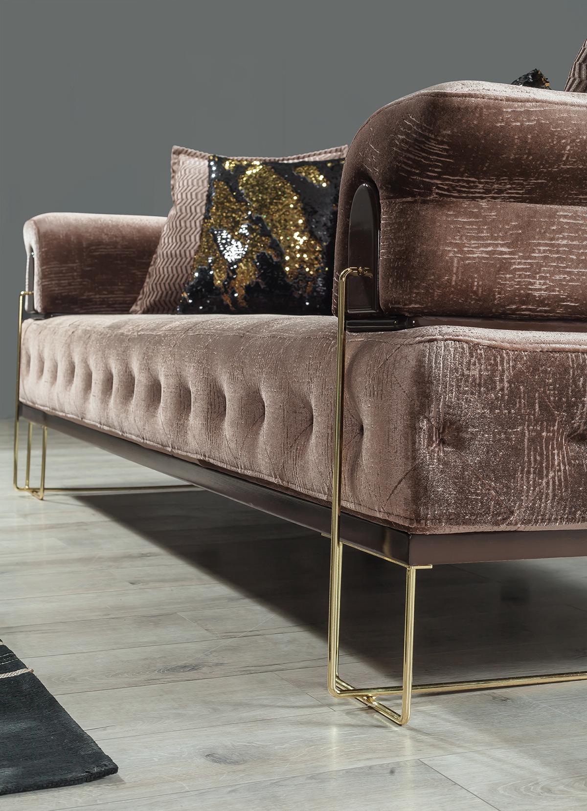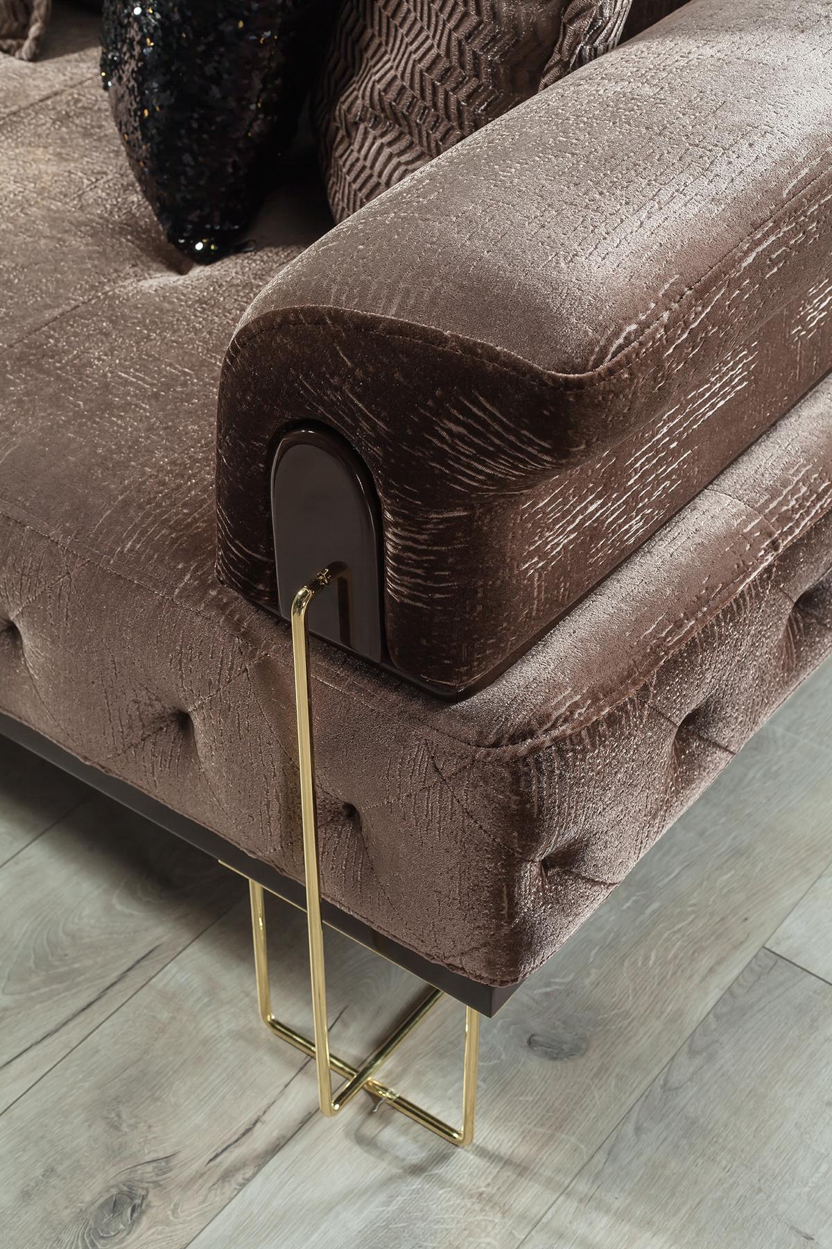 Sofá marrón Chesterfield de 3+1 plazas para sala de estar.