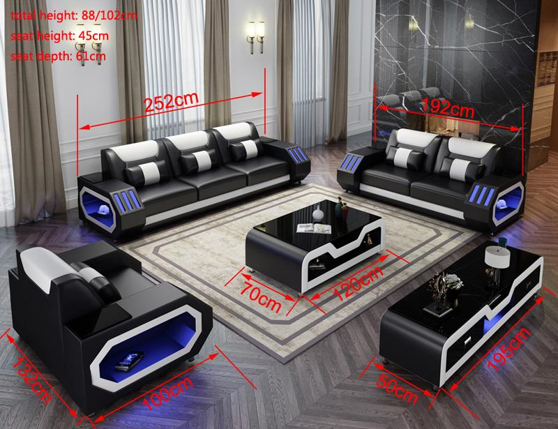 Sofá de cuero Sofá Sofá set 3+1+1 - Sofás de diseño iluminados Nuevos