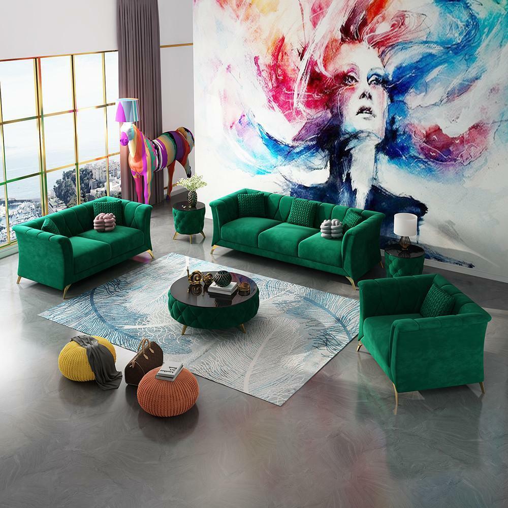 Ya sea para disfrutar de agradables veladas en familia en el salón o para crear un rincón de lectura acogedor en el dormitorio, este conjunto de sofás acolchados se adapta a diversas situaciones. La profundidad del asiento y su altura ergonómica garantizan un confort óptimo, mientras que la elección de colores libres te permite integrar el sofá en cualquier decoración. Gracias a la opción de extender tu elección a diferentes tipos de materiales premium, como cuero de vaca de Italia o cuero completo premium, este conjunto de sofás se convierte en una pieza única que combina calidad y diseño. Disfruta de momentos de relax y confort con estilo gracias al Mueble de sofá diseñado 3+2+1 plazas tela conjunto de sofás acolchados sofá.