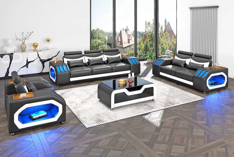 Sofá negro, muebles modernos, conjunto de sofás 3+2+1
