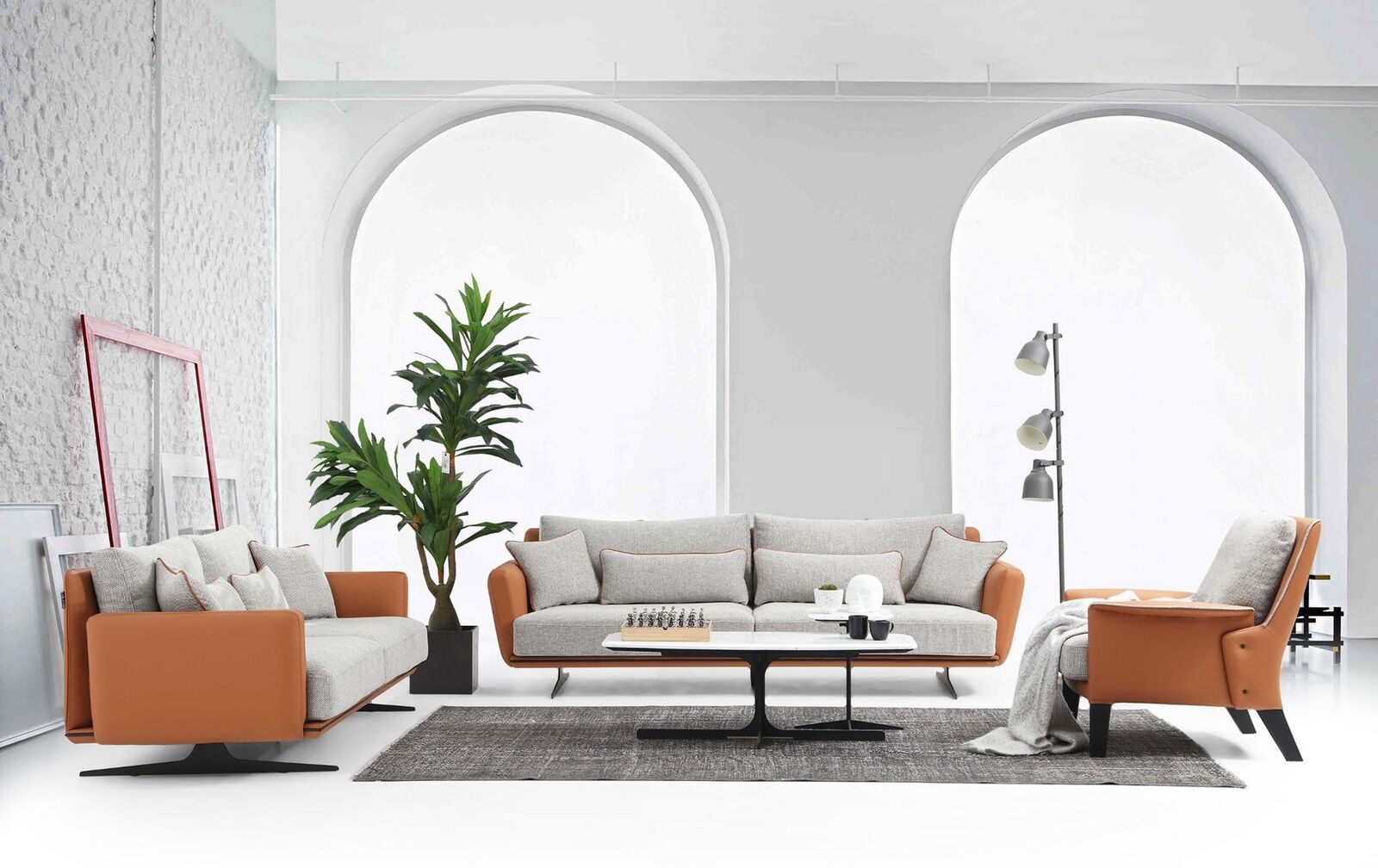 Conjunto completo de sofás conjunto de sofá sofá de 3 plazas tela naranja.