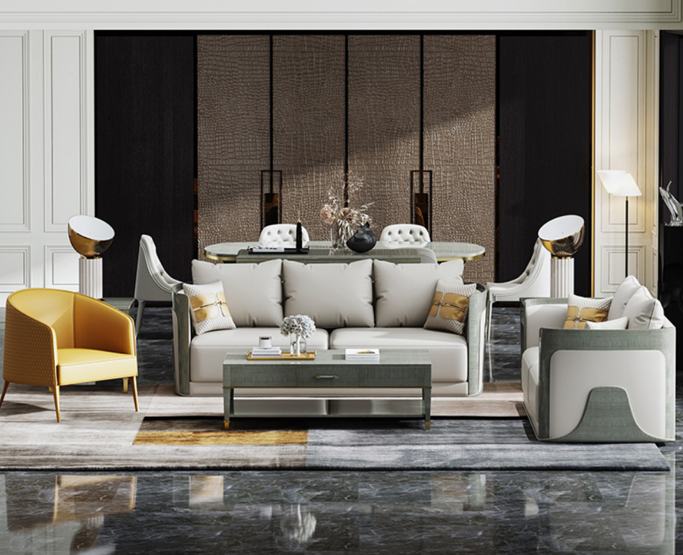 Sofá de sala de estar gris noble 3+2 plazas, sofás de cuero exclusivos.
