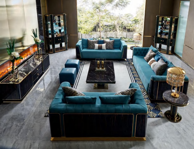 Muebles de lujo para la sala de estar con juego de sofá, mesa de centro y diseño de sofá.