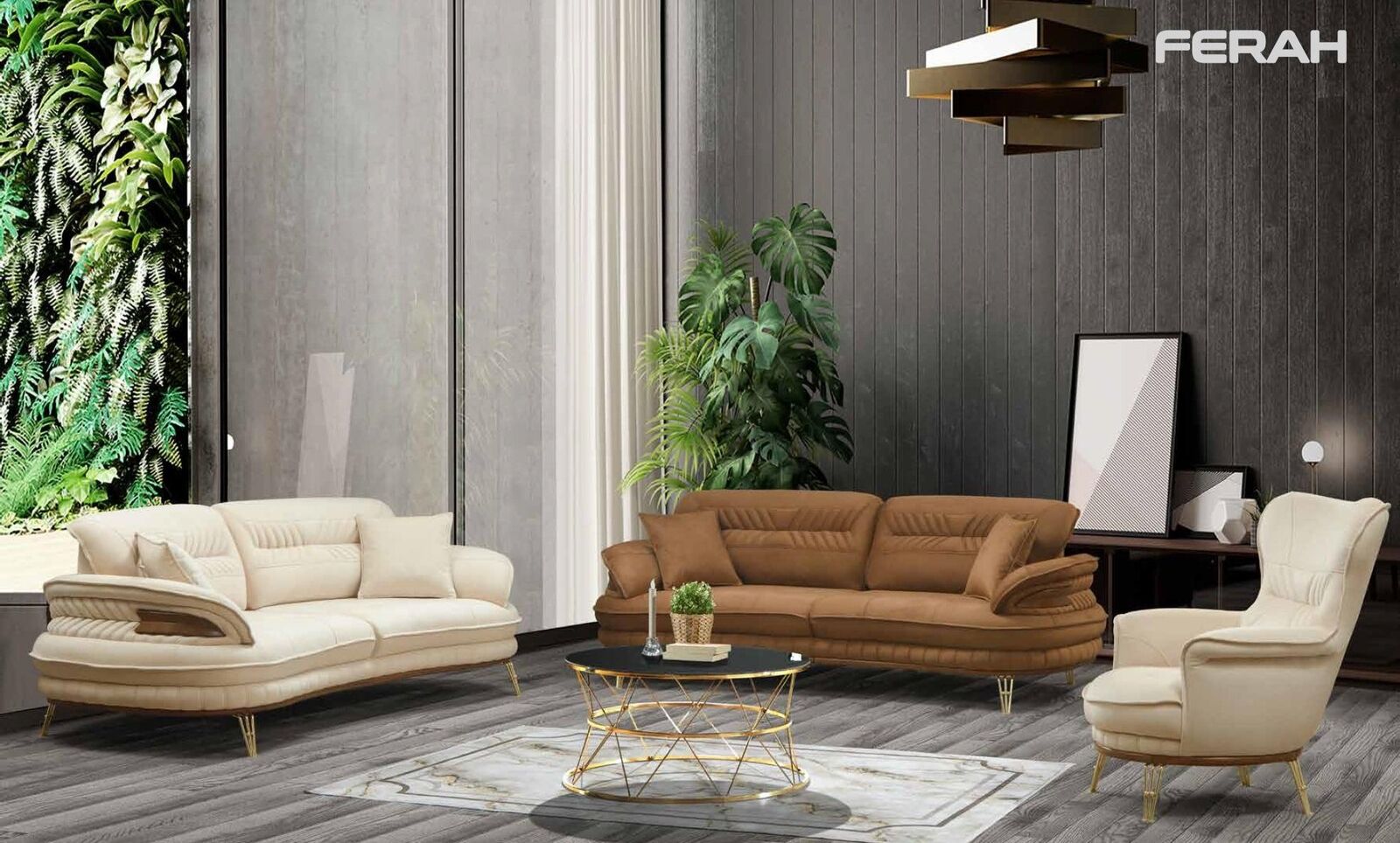 El Sofá de lujo para salón 3+3+1 asientos Sofa Sofás Sillón Diseño es una pieza de mobiliario elegante y sofisticada que transformará tu salón en un lugar de confort y estilo. Este conjunto incluye un sofá de 3 plazas y otro de 1 plaza, junto con una butaca a juego, todos diseñados con la marca FERAH para ofrecer la máxima calidad y diseño en tu hogar. Con aproximadamente 240 cm de longitud, 110 cm de ancho y 85 cm de altura, el sofá principal es espacioso y cómodo, ideal para reuniones familiares o momentos de relax. Fabricado con madera de alta calidad y textil duradero, este sofá garantiza resistencia y durabilidad a largo plazo.