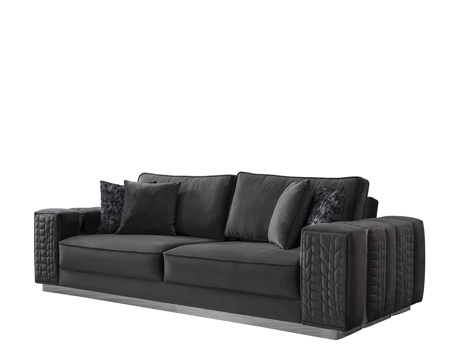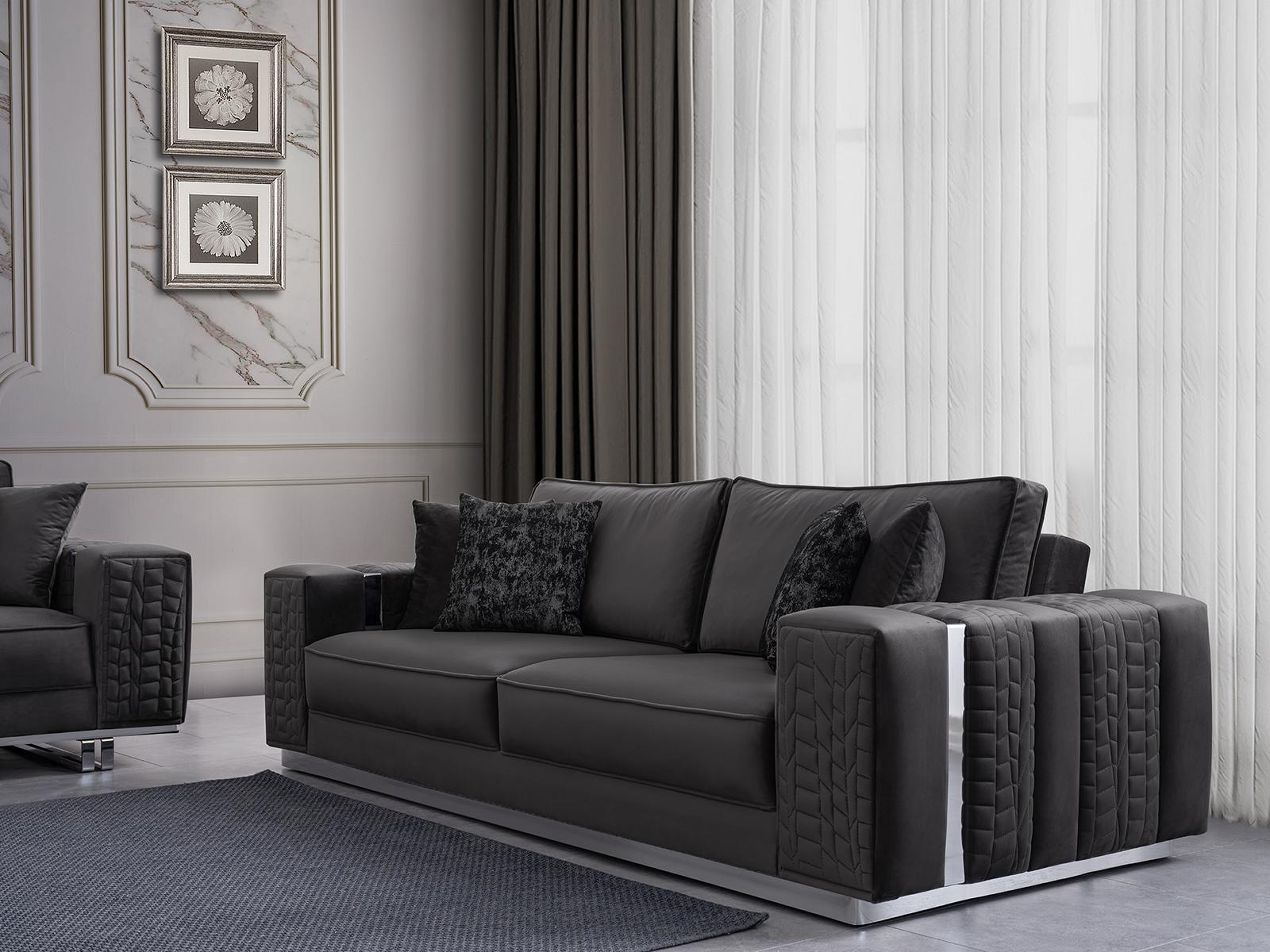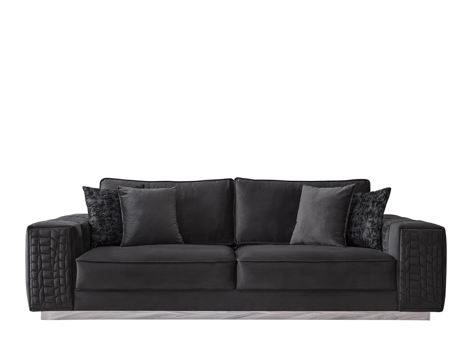 Sofá de tela negro con 3 asientos y 1 asiento, conjunto clásico de sofá barroco.