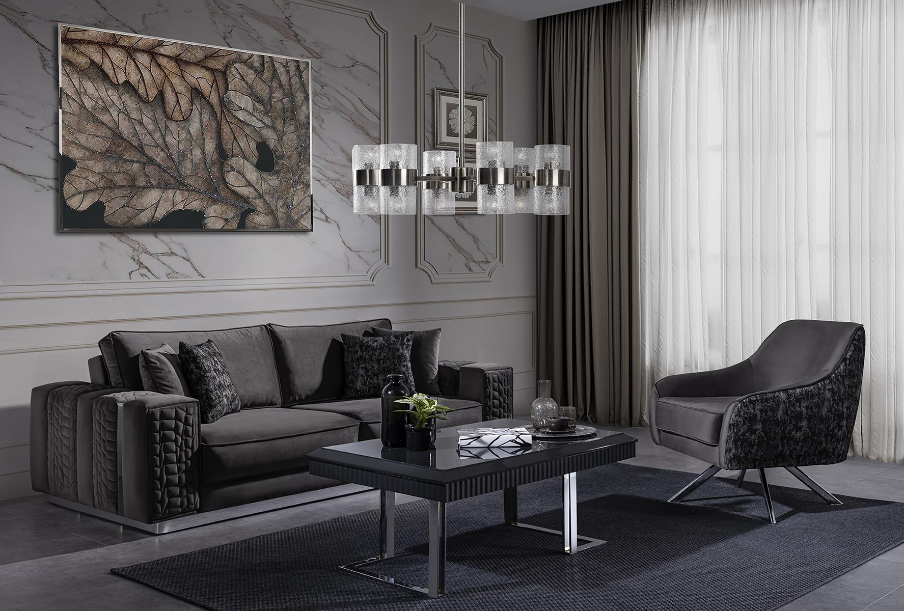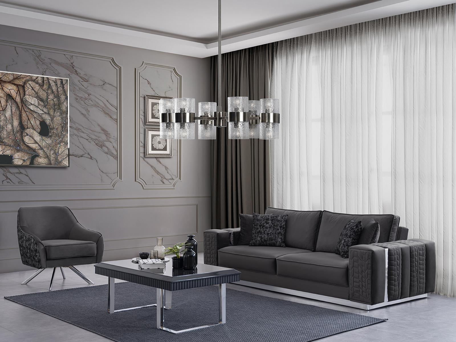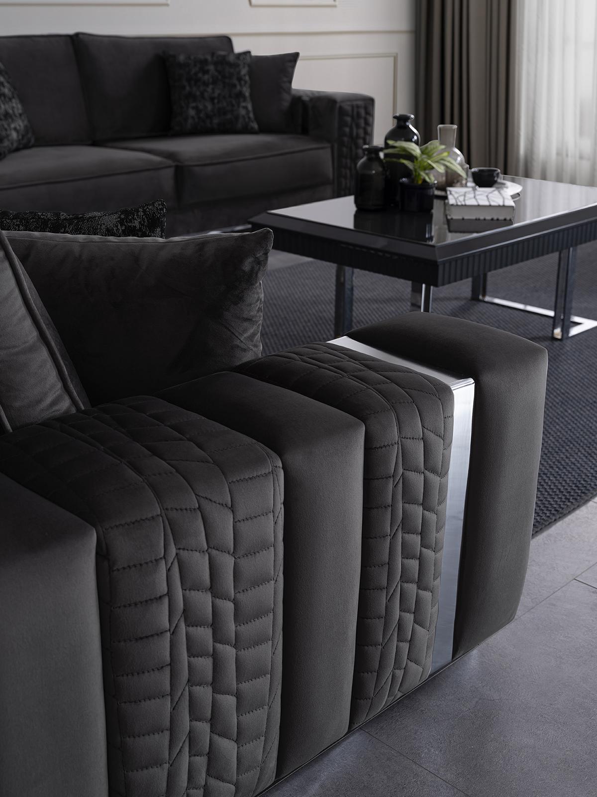 Sofá de tela negro con 3 asientos y 1 asiento, conjunto clásico de sofá barroco.