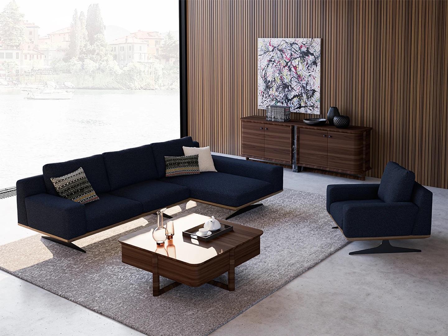 Moderno salón de diseñadores azul equipamiento sofá tapizado de lujo tejido tapizado.