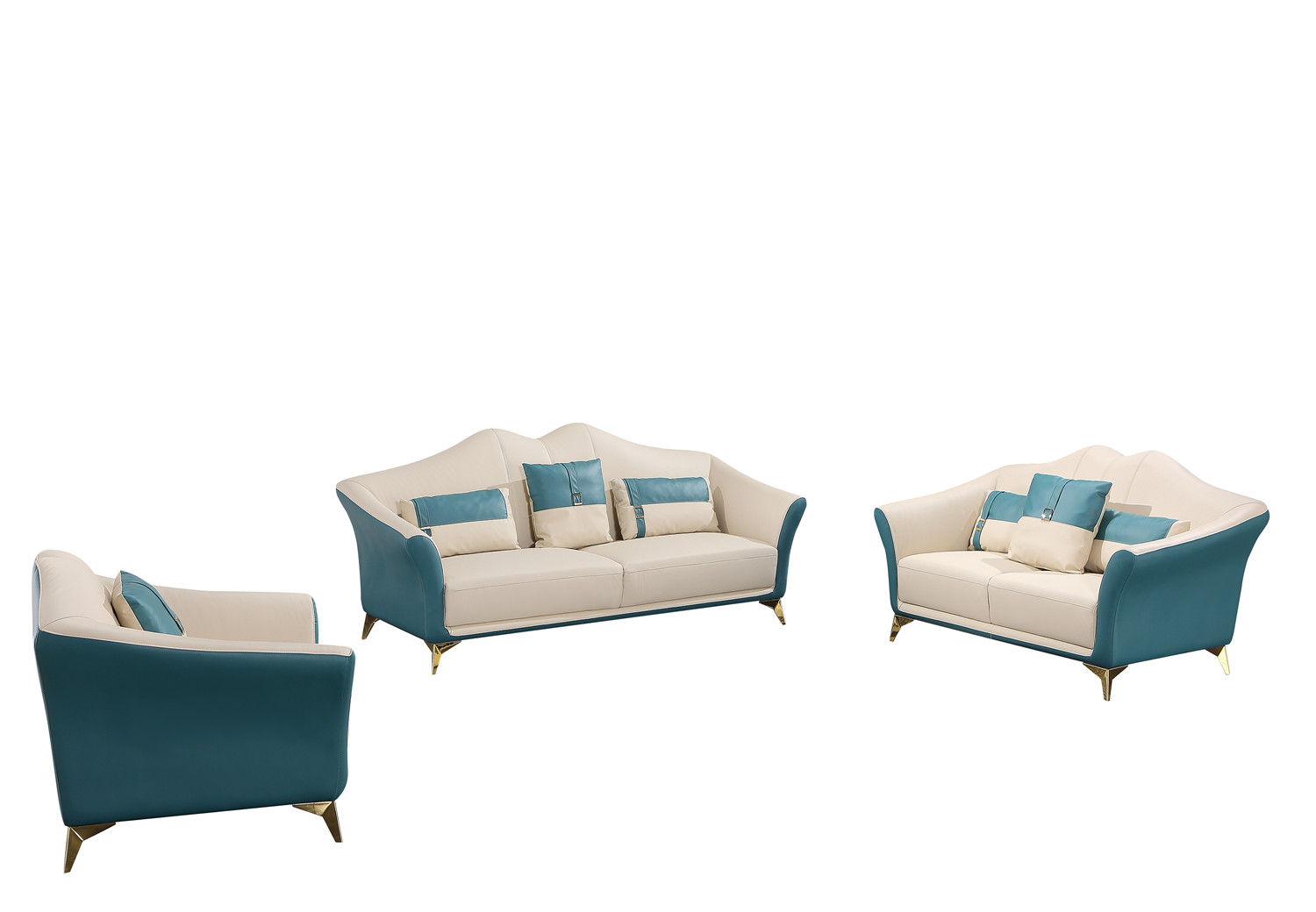 Sofá con tapizado de cuero, conjunto completo de sofá moderno de 3 + 2 plazas.