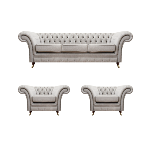 Lujo mobiliario Nuevo juego de sofá en gris de 3 piezas estilo Chesterfield: Diseñado para brindar elegancia y comodidad, este juego de sofá de lujo incluye un sofá de 3 plazas y 2 sillones, todo en un atractivo color gris. Con una estructura interna de madera auténtica y núcleo de resorte, este conjunto ofrece durabilidad y un soporte excepcional. El sofá cuenta con unas medidas aproximadas de 220cm x 90cm x 80cm, mientras que los sillones miden aproximadamente 130cm x 90cm x 80cm, todos con asientos amplios y profundos para una experiencia de relax incomparable.