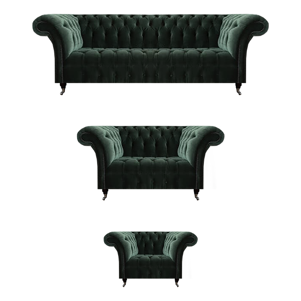 Sofá de 3 piezas tapizado con un sofá de tres plazas y dos sofás de dos plazas Chesterfield.