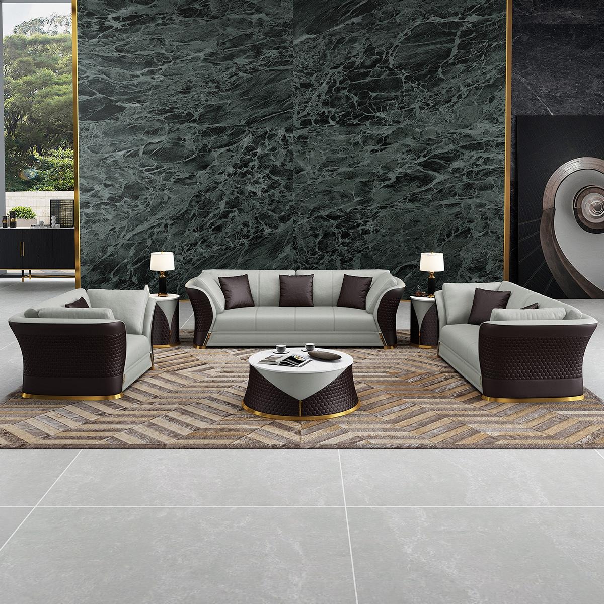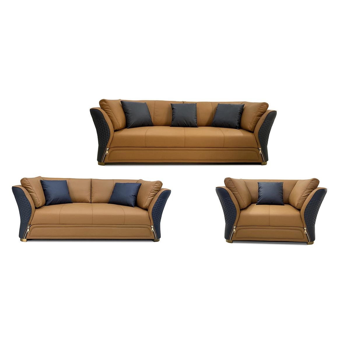 Conjunto de asientos de 3+2+1 plazas Sofás acolchados de diseño en cuero Relax moderno Nuevo marrón