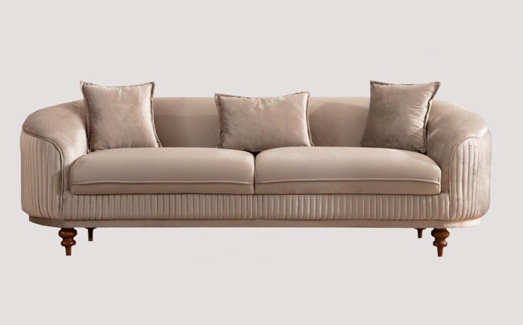 El Sofá de 3 plazas es un elegante y lujoso mueble de diseño moderno que elevará la apariencia de cualquier espacio. Con sus medidas de aproximadamente 240 x 90 x 75 cm, este sofá ofrece comodidad y estilo en una sola pieza. La altura del asiento de aproximadamente 42 cm y la profundidad del asiento de 56 cm brindan un soporte ergonómico para una experiencia de descanso óptima. Confeccionado con materiales de alta calidad, este sofá está tapizado en un **textil** de primera categoría que garantiza durabilidad y fácil limpieza.