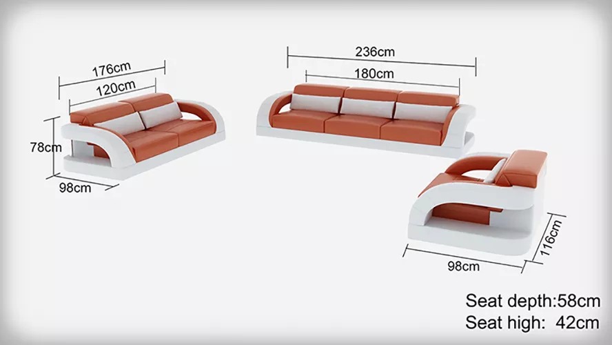 Personaliza tu salón eligiendo tu color favorito entre la amplia selección disponible, con la opción de diferentes tipos de materiales de tapizado en la tienda, desde tejidos de cuero premium hasta cuero auténtico premium. Con alturas y profundidades diseñadas para brindar la máxima comodidad, estos sofás son ideales para reuniones familiares, tardes de relax o como elemento central de tu sala de estar. Eleva el ambiente de tu hogar con estos sofás de diseño exclusivo que combinan funcionalidad, estilo y calidad en un solo producto.