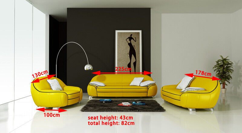 En el sofá de 3 plazas con medidas aproximadas de 225 x 100 x 82 cm y los dos sillones individuales de aproximadamente 130 x 100 x 82 cm, encontrarás el equilibrio perfecto entre tamaño y confort. La opción de actualizar a cuero genuino por un recargo de 399,00 EUR o elegir entre otros tejidos premium te brinda la posibilidad de personalizar aún más tu mobiliario. Con alturas y profundidades bien pensadas para un óptimo descanso, estos sofás son ideales para crear un ambiente acogedor y acogedor en tu hogar. **Tejido de fibra de cuero (70% cuero / 30% poliéster) aplicado estratégicamente para ofrecer un equilibrio entre lujo y practicidad, haciendo que estos sofás sean una adición imprescindible a tu decoración.