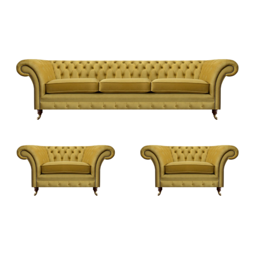 Amarillo juego de sofás completo para sala de estar de 3 piezas, sofás de tela y sillón Chesterfield nuevos.