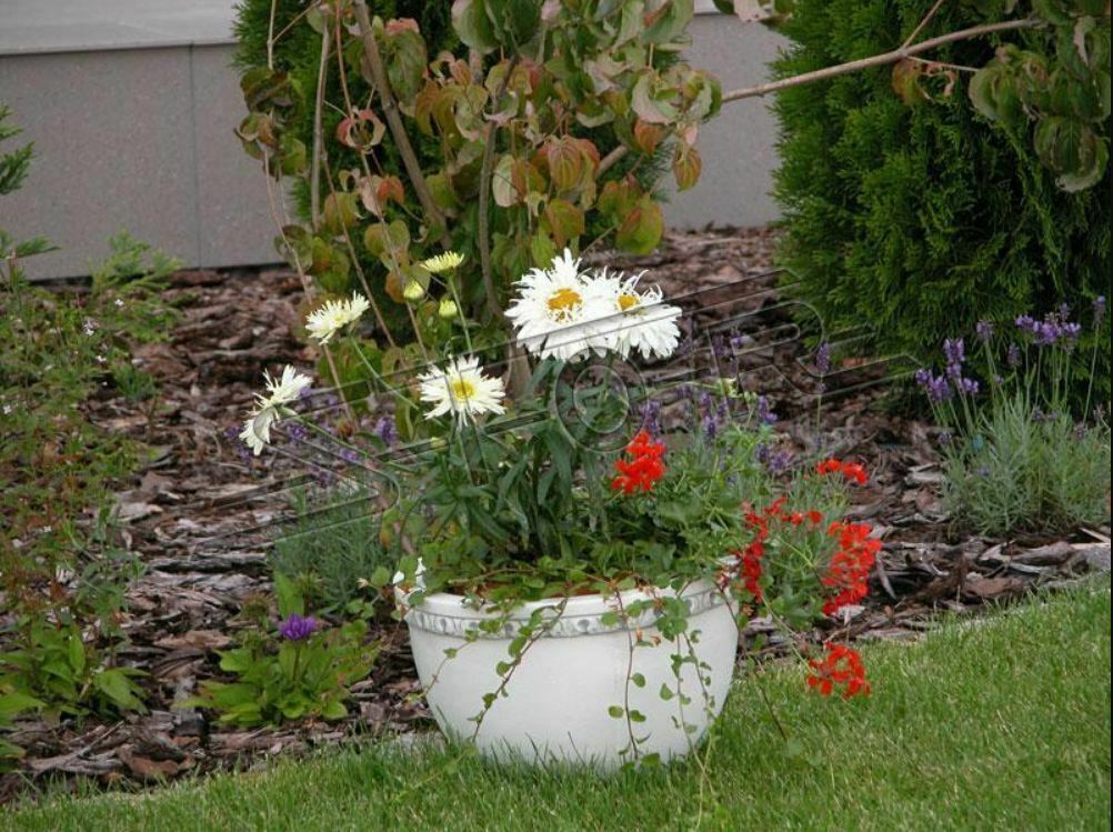 Cesto de flores, flores, jarrón, recipiente, jardín, terraza, decoración