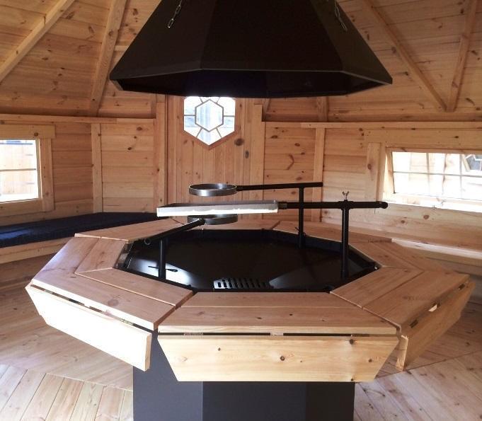 La Parrilla de metal de 8 esquinas con mesa perimetral es un kit ideal para potenciar su experiencia de parrilla en su cabaña existente. Con su diseño único de 8 esquinas, esta parrilla ofrece una gran superficie de cocción para asar verduras, carne y pescado. La mesa perimetral proporciona un espacio adicional para preparar alimentos y disfrutar de la compañía de amigos y familiares durante las reuniones al aire libre. La chimenea extensible permite un control óptimo del humo y la temperatura, asegurando resultados de cocción perfectos.