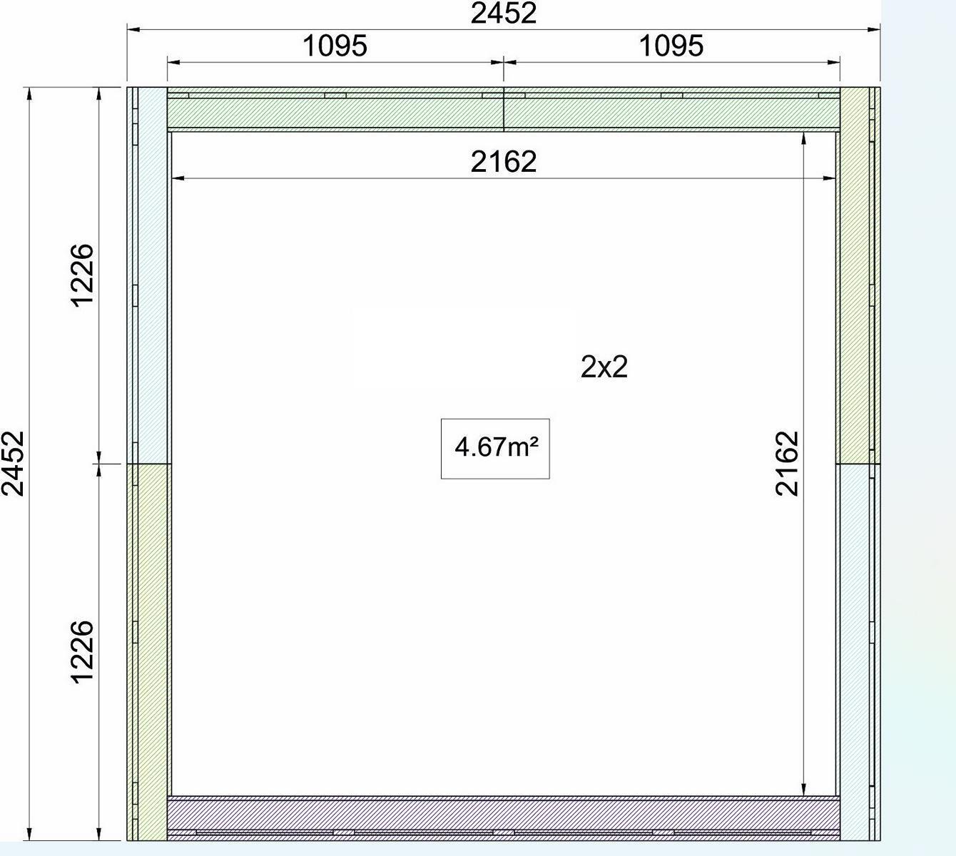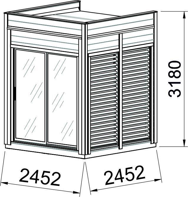 Dimensiones exteriores: 2.45 x 2.45 x 3.18 m