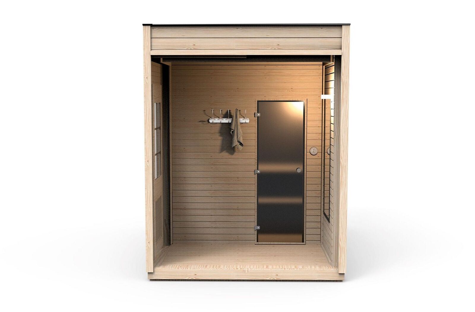 **Equipada con** una puerta de un ala, ventanas con persianas de madera y bancos rectos en el interior, esta sauna proporciona comodidad y funcionalidad. La presencia de tableros de acabado interior y exterior resistentes al calor, junto con una pared interior de vidrio templado tintado, crean un ambiente elegante y moderno. Disfruta de momentos de relajación y bienestar con el juego de sauna estándar incluido, ideal para uso personal en tu jardín o patio. La Sauna de madera Woodpro es la elección perfecta para aquellos que buscan un oasis de calma y descanso en su propio hogar.