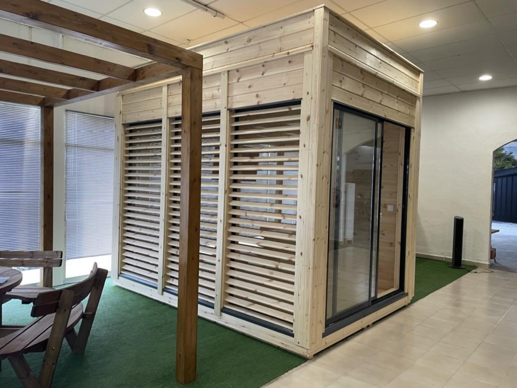 La Sauna de madera Woodpro para jardín es la adición perfecta para tu espacio al aire libre, brindando una experiencia de sauna seca única y relajante. Con unas dimensiones externas de **345x245x318 cm**, esta sauna ofrece un generoso espacio interior de **7,04 m²** para disfrutar de sesiones de sauna cómodas y revitalizantes. Construida con madera de pino de alta calidad, la sauna cuenta con un techo de membrana bituminosa y un aislamiento de lana de roca de **100 mm**, garantizando un ambiente cálido y acogedor.