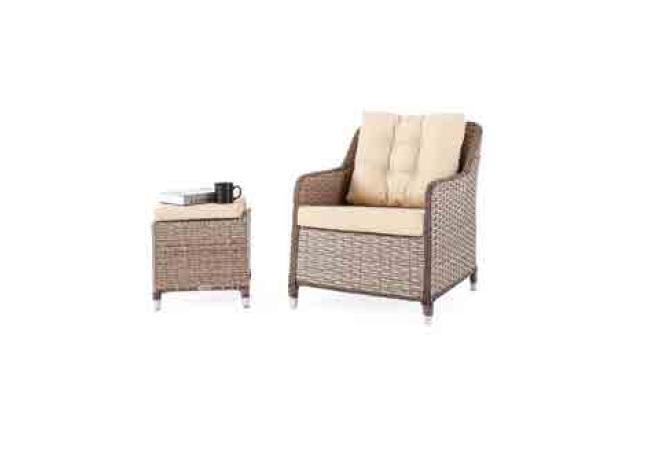 Muebles de exterior, sillas cómodas, sofá y conjunto de salón para relajarse al aire libre, decoración de jardín.