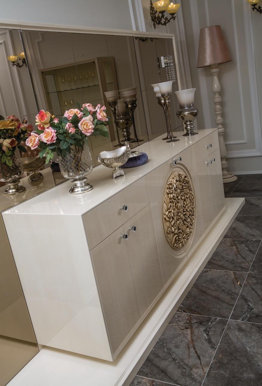 Juego de comedor con mesa, aparador, conjunto de 4 sillas, vitrina, taburete. Nuevo.