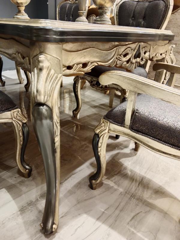 Muebles de comedor de diseño Mesa de comedor de madera Mesa Dorada Espacio para 6 personas es una pieza elegante y funcional que agregará un toque de sofisticación a tu comedor. Con unas dimensiones de aproximadamente 208 x 80 x 108 cm, este espléndido comedor ofrece un amplio espacio para hasta 6 personas, ideal para reuniones familiares o cenas con amigos. Su diseño en madera de alta calidad garantiza durabilidad y resistencia, mientras que su exquisito acabado en color dorado añade un toque de glamour a cualquier ambiente.