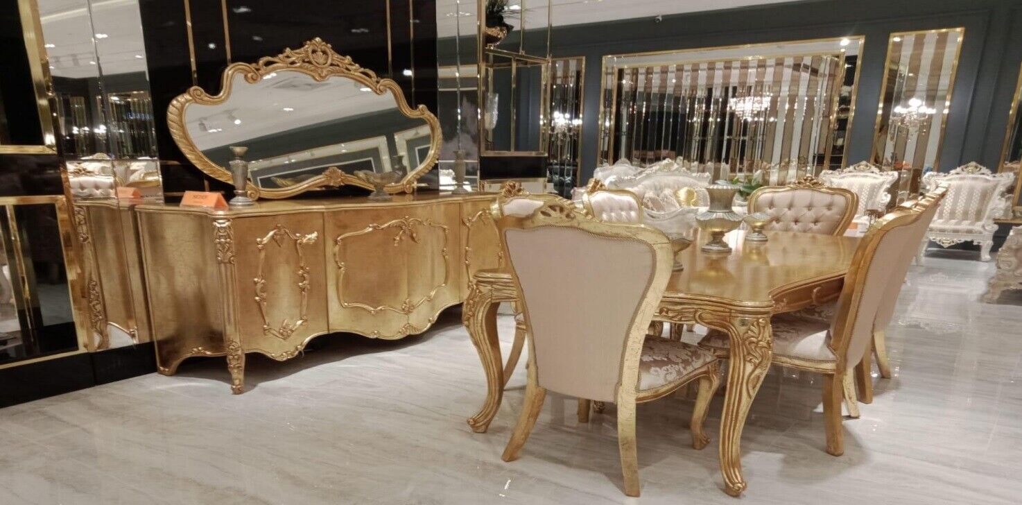 Lujo conjunto de 9 piezas. Mesa de comedor, silla, cómoda, espejo. Mesa de comedor nueva.