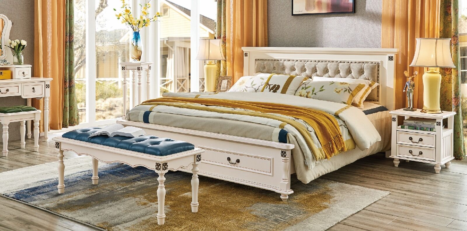 Cama, cama doble, cama con marco, cama clásica, muebles de dormitorio.