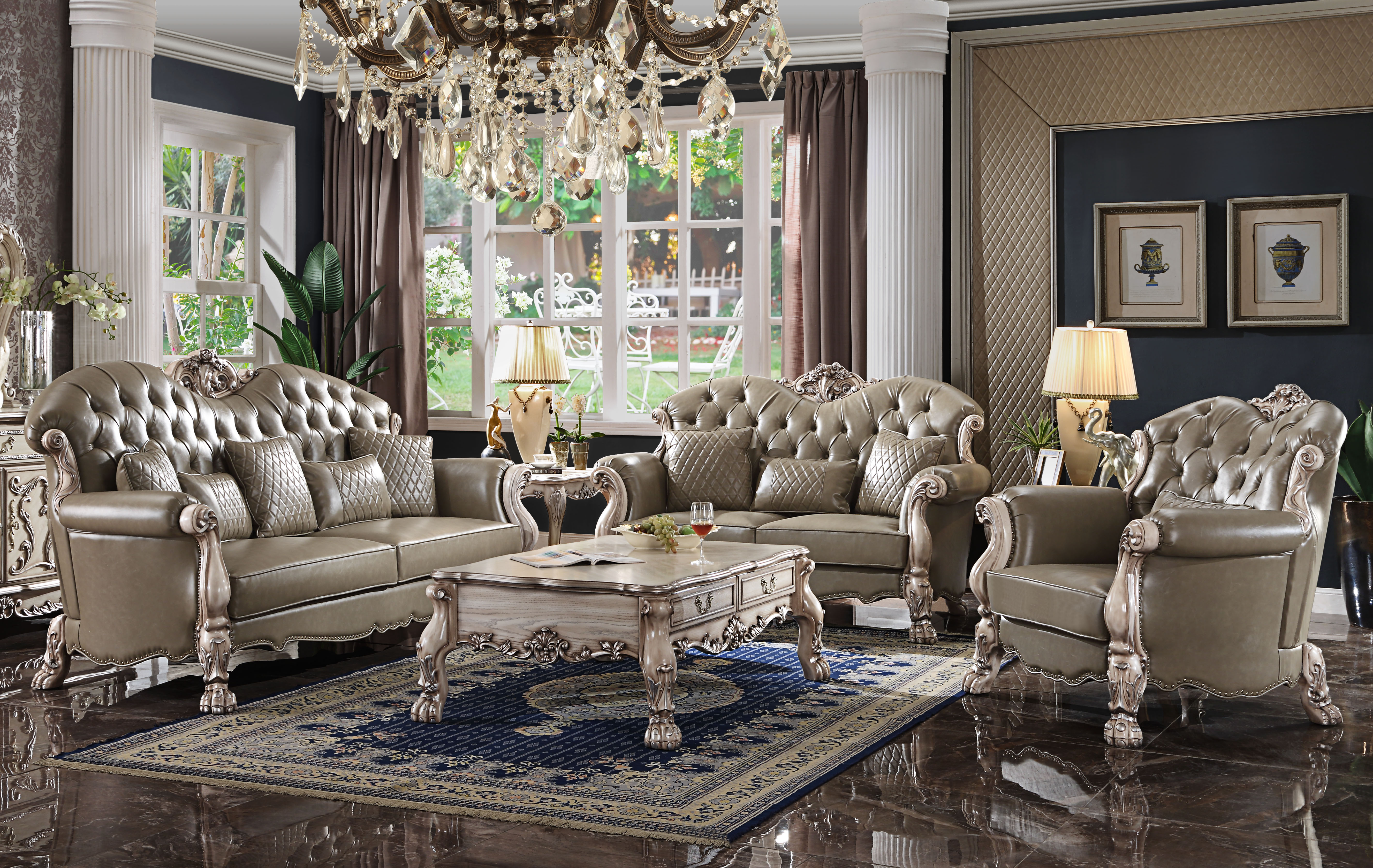 Este conjunto de muebles de sala transformará tu hogar en un oasis de sofisticación y confort. El sofá de 3 plazas con sus dimensiones de 237 x 98 x 117 cm, junto con el sofá de 2 plazas y el sillón individual, ofrecen asientos amplios y acogedores. La mesa de centro de 137.1 x 91.4 x 51 cm complementa perfectamente el conjunto, proporcionando un espacio ideal para servir bocadillos o exhibir tus decoraciones favoritas. Ideal para reuniones sociales o noches de cine en casa, este conjunto de muebles de lujo para sala añadirá un toque de estilo refinado a tu hogar.