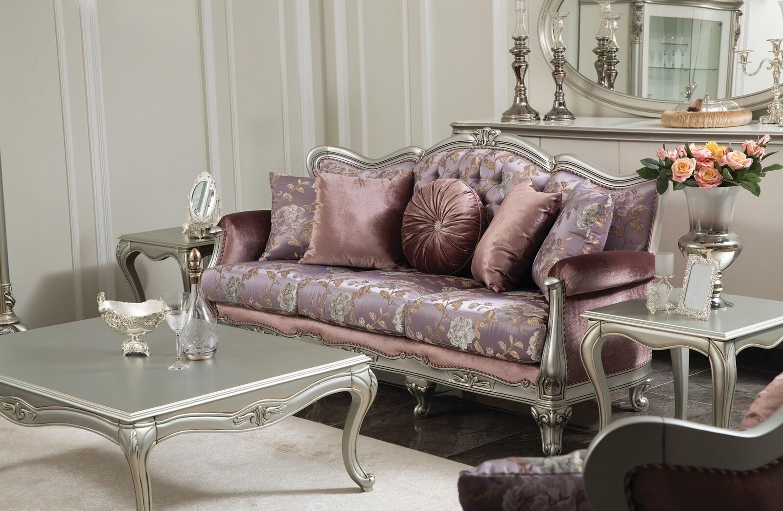 Sofá de 3 plazas Lila Sala de estar Muebles de diseño clásico Sofás de lujo Nuevos
