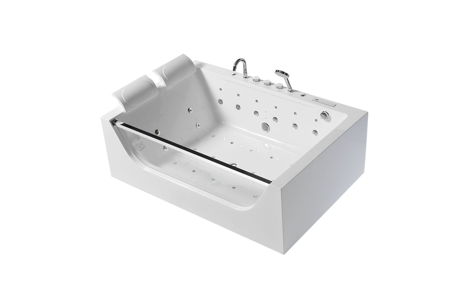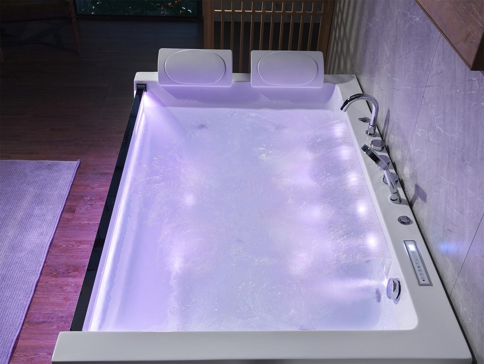 Para una experiencia de spa personalizada, nuestro Baño de hidroterapia en bañera de hidromasaje interior bienestar de baño ofrece una variedad de opciones adicionales que incluyen iluminación de color subacuática, masaje de burbujas de aire, tuberías autolimpiantes y calefacción termostática. La esterilización por ozono y el panel de control táctil digital con radio FM, interfaz USB y altavoces te permiten disfrutar de un ambiente de spa personalizado en tu hogar. Ya sea para relajarte después de un largo día de trabajo o para darte un capricho de bienestar en cualquier momento, esta bañera de hidromasaje te brinda la oportunidad de elevar tus baños a un nivel totalmente nuevo de lujo y comodidad.