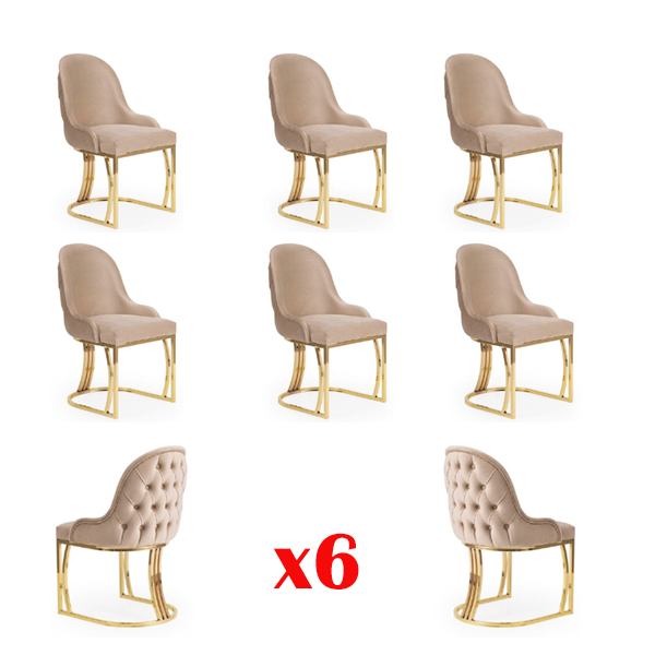 Este Conjunto de 6 sillas de diseño metálicas con tapizado de tela para comedor es la combinación perfecta de estilo y funcionalidad para tu espacio de comedor. Con un diseño moderno y elegante, estas sillas aportarán un toque sofisticado a tu hogar. El acero inoxidable utilizado en su estructura garantiza durabilidad y resistencia, mientras que el tapizado de tela ofrece comodidad adicional durante largas comidas o reuniones familiares. Las dimensiones de aproximadamente 60 x 58 x 80 cm proporcionan un tamaño adecuado para la mayoría de las mesas de comedor, con una altura de asiento de aproximadamente 44 cm para una postura ergonómica.