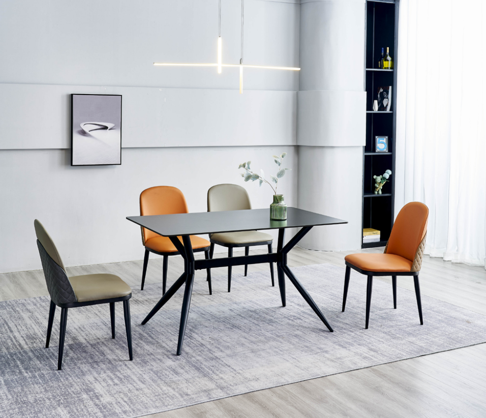 Set de comedor Mesa de comedor de diseño 4 sillas tapizadas Mobiliario de acero inoxidable de 5 piezas