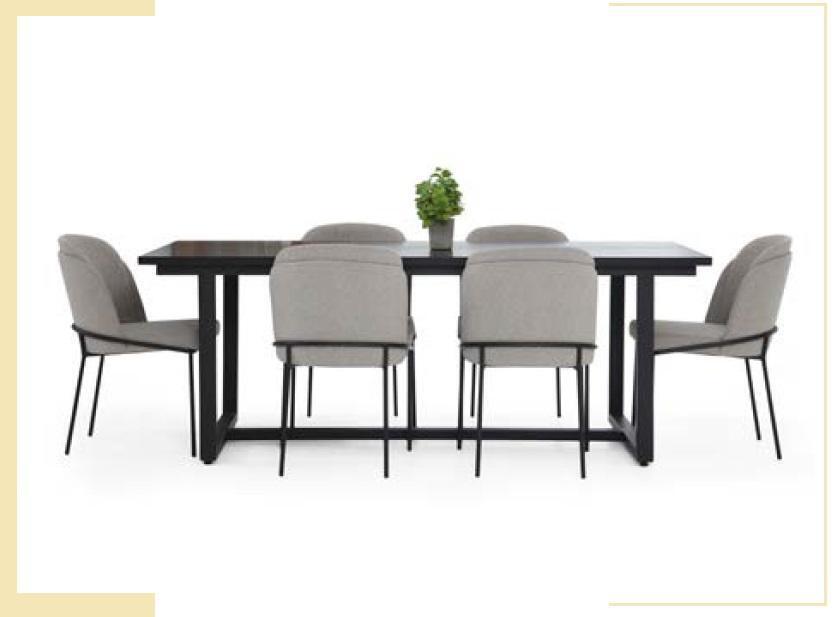 Este conjunto de comedor es ideal para reunir a familiares y amigos en celebraciones o comidas cotidianas, brindando un lugar cómodo y acogedor para disfrutar de deliciosas comidas. La mesa de madera sólida y las sillas tapizadas en tela ofrecen durabilidad y confort, asegurando que cada encuentro sea una experiencia placentera. Además, el juego incluye seis piezas, lo que lo convierte en la opción perfecta para hogares que buscan un conjunto completo y coordinado para su comedor. Atrévete a transformar tu espacio con este conjunto de comedor de alta calidad.