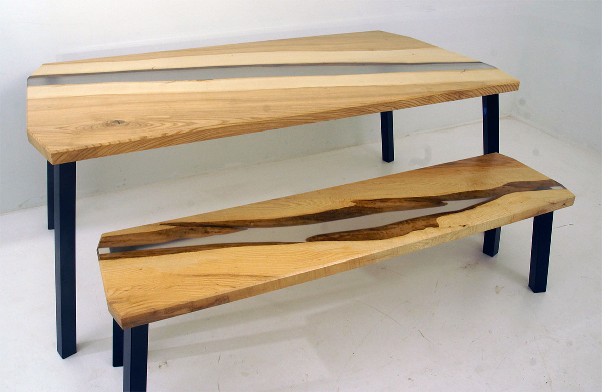 Epoxi resina Mesa Banco 2 piezas. Set Madera real Mesa grupo de mesas de cascada río Nuevo