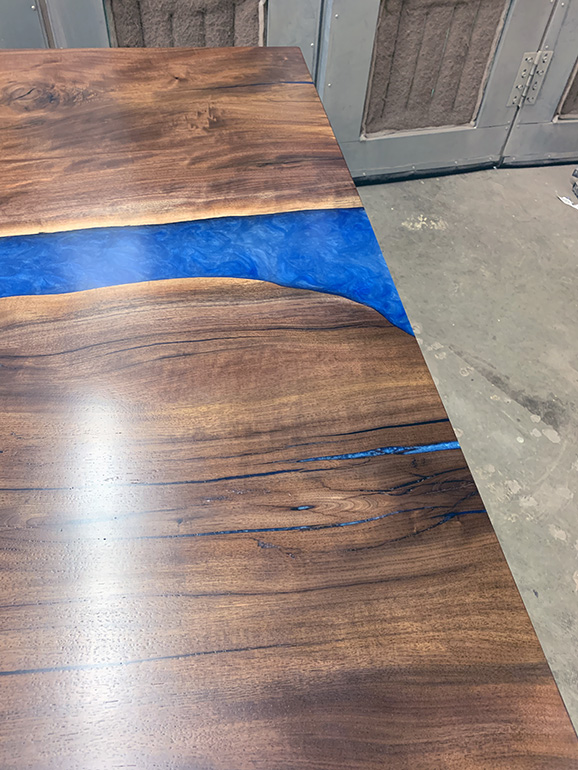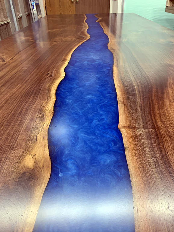 La meticulosa fabricación de esta mesa se realiza con la mejor conciencia, utilizando materiales de alta calidad para garantizar durabilidad y resistencia. Perfecta para reuniones familiares, cenas formales o incluso como elemento decorativo en tu hogar u oficina. La combinación de madera maciza de nogal y resina epoxi crea un efecto visual impresionante que seguramente llamará la atención de tus invitados. Si buscas una mesa de comedor única y personalizada, esta River Table es la elección perfecta. ¡Contáctanos para obtener una oferta personalizada y transforma tu espacio con esta deslumbrante mesa de comedor!