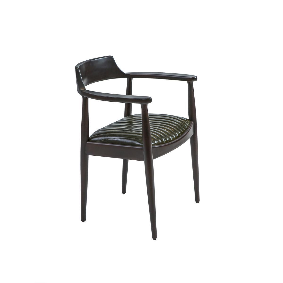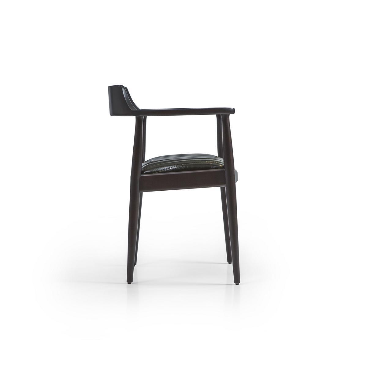 Diseño de silla de comedor con reposabrazos. Nuevo asiento de muebles. Silla de madera negra.