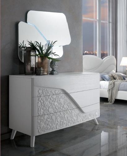 La cómoda de madera de este juego ofrece la solución perfecta para mantener tu ropa y accesorios organizados. El espejo, con sus dimensiones generosas, agrega estilo y funcionalidad a tu rutina diaria de arreglo personal. Ya sea en tu dormitorio, vestidor o cualquier otro espacio, este juego de lujo de 2 piezas complementará tu decoración existente con su elegancia moderna y su color blanco fresco. Aprovecha la calidad y el diseño nuevo de este conjunto para realzar tu hogar con estilo y practicidad.