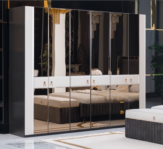 Armario de dormitorio de madera muebles de estilo italiano armarios guardarropa nuevo es una elegante y funcional pieza de mobiliario que añadirá un toque de sofisticación a tu dormitorio. Con un diseño de estilo italiano, este armario destaca por su calidad y durabilidad, brindando un amplio espacio de almacenamiento para organizar tus prendas y accesorios de manera ordenada.