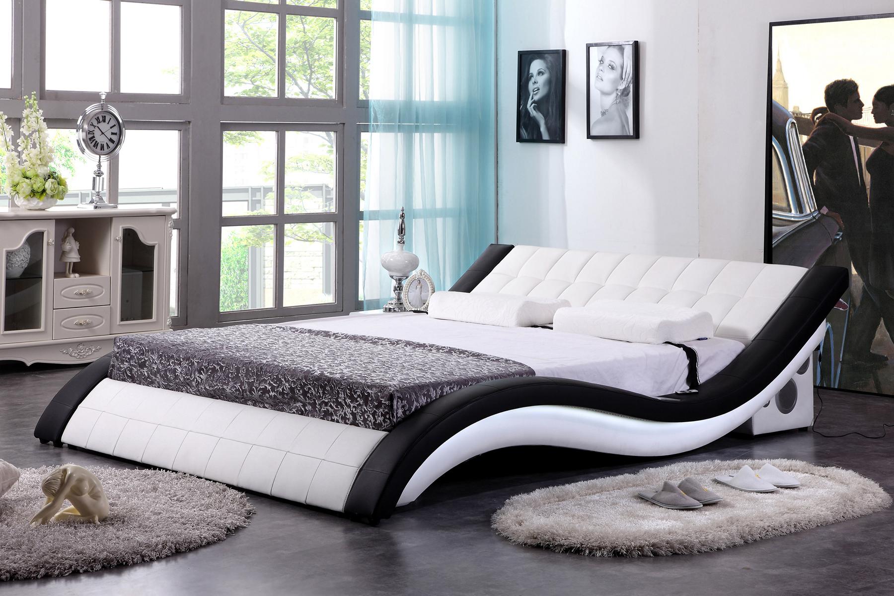 Diseño de cama Camas digitales USB Lujo Muebles de dormitorio de cuero Doble