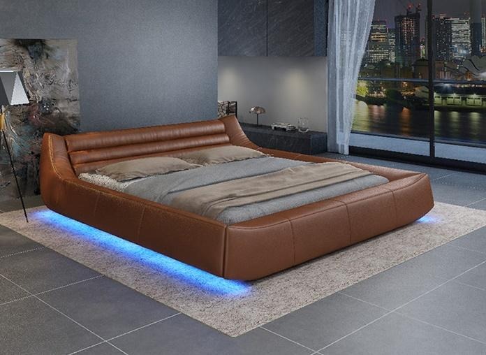 Compre una cama doble con tapizado de cuero, muebles de diseño, muebles de madera.