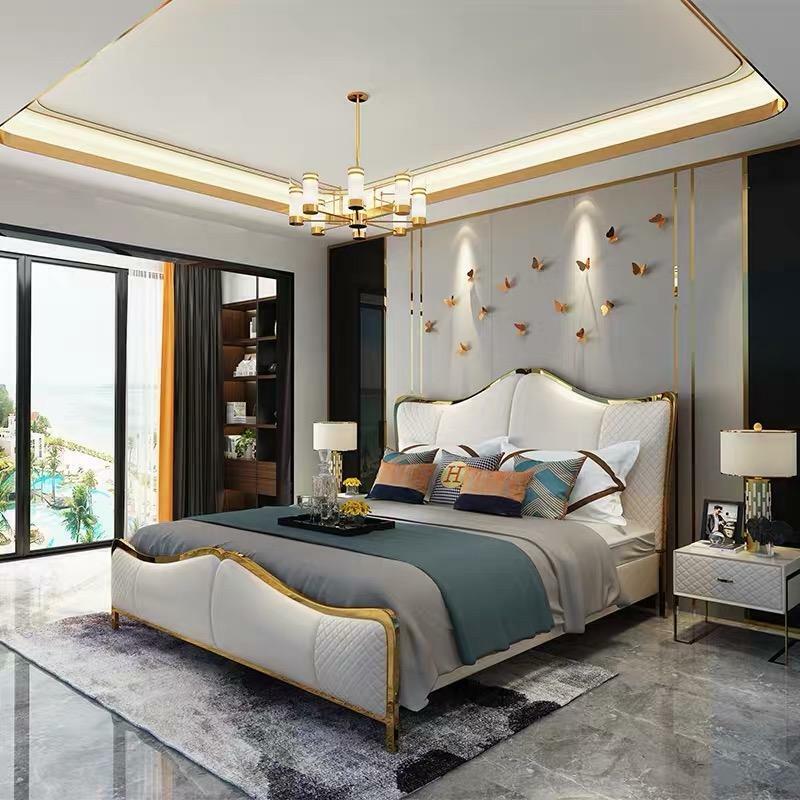 cama doble, cama de cuero, muebles, muebles de dormitorio de lujo
