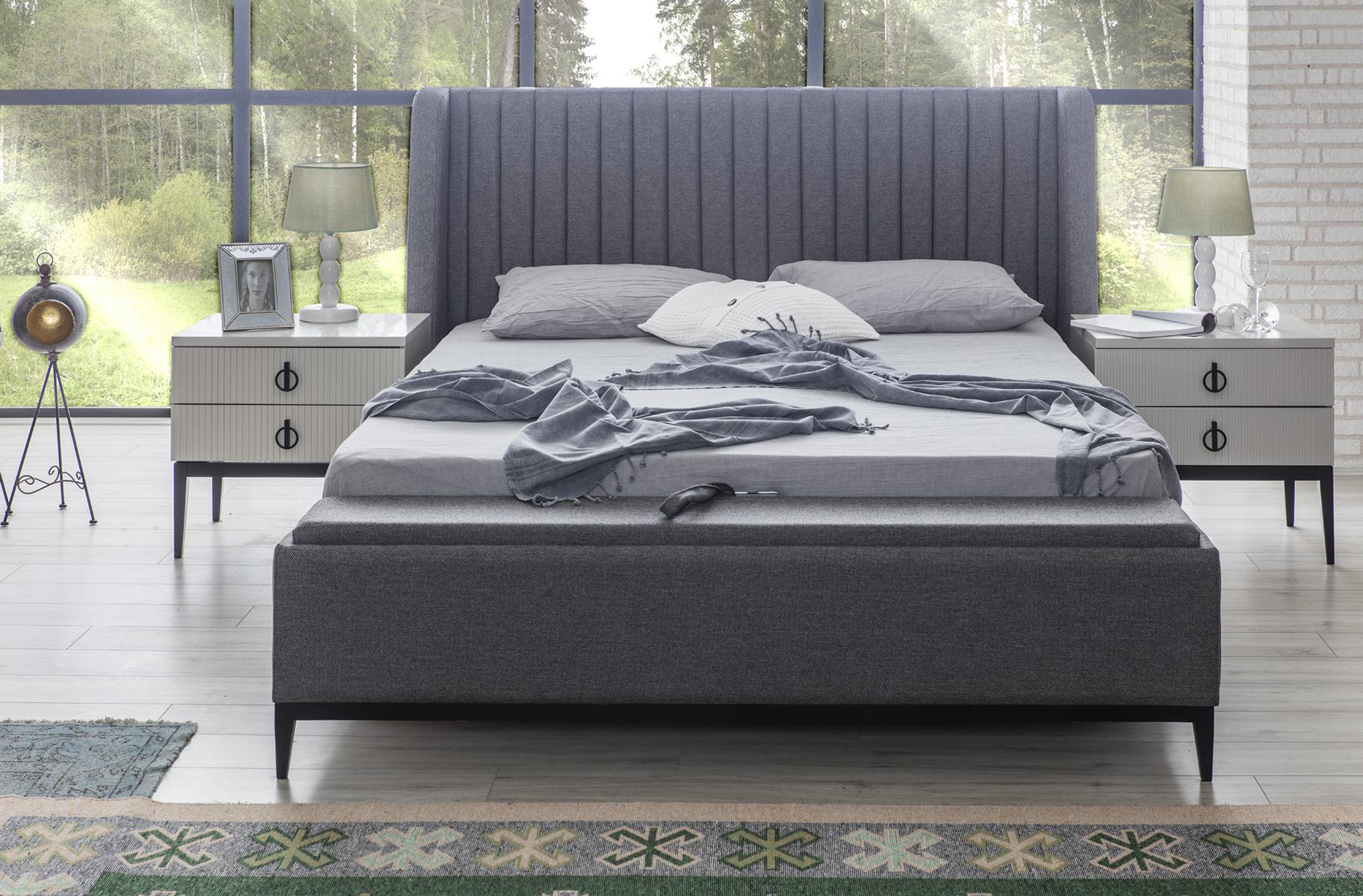 Diseño de cama cama doble camas de cama de dormitorio tapizado muebles de hotel marco de cama gris